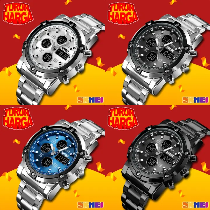 Skmei Original Stainless Steel Casual Men Watch Dual Display Skmei 1389 Water Resistant Lazada Indonesia