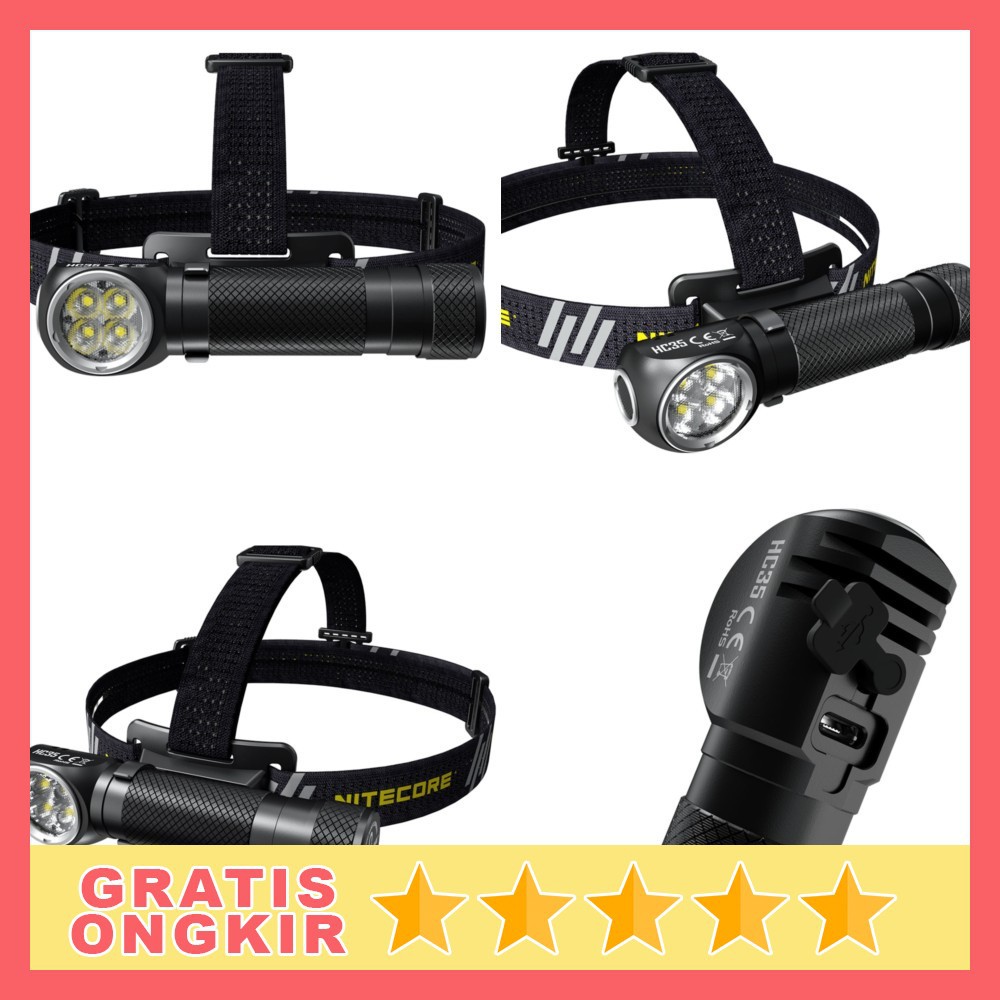 NITECORE HC35 2700 Lumen USB Rechargeable L-Shape Headlamp Multipurpose Detachable Flashlight The NITECORE HC35 L-shaped headlamp is powered by a quad LEDs setup with a max brightness of 2700 lumens at over 146 yards of beam throw. It can produce a staggering 2700 lumens. Cari produk Headlamp Senter Camping lainnya di Tokopedia.